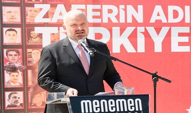 Saygı duruşu ve İstiklal Marşı'nın ardından Kuran tilaveti ve şehitler için edilen dua ile başlayan programda konuşan Menemen Belediye Başkanı Aydın Pehlivan, "Bugün gönlümüzün bir yanında toprağa verdiğimiz evlatlarımızın, anaların gözyaşlarının, babaların sessiz çığlıklarının hüznü var. Diğer yanında ise ay yıldızlı bayrağı yere düşürmeyen, ezanı susturmayan, istiklal ve istikbali teslim etmeyen bir milletin destansı direnişi, tertemiz gururu var. Açıkça ve kararlılıkla söylemek gerekiyor ki; O karanlık geceyi unutmadık, unutturmayacağız! Karanlık gecenin sonunda doğan güneşi de kimsenin karartmasına izin vermeyeceğiz! 15 Temmuz, sadece bir darbe girişiminin önlenmesi değildir. 15 Temmuz, milletin iradesine, onuruna ve geleceğine sahip çıktığı bir dirilişin adıdır! Cumhurbaşkanımız Sayın Recep Tayyip Erdoğan’ın çağrısıyla, milyonlar tek yürek oldu! Camilerden yükselen selalar, evlerden taşan dualar, meydanlarda atılan tekbirlerle bu millet bir kez daha şahlandı. Ve sonunda: Millet kazandı, hainler kaybetti!" dedi.
