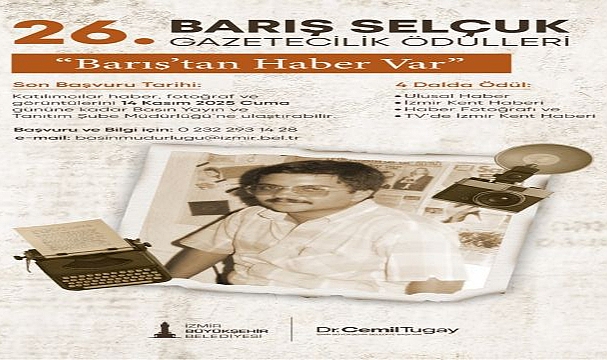 İzmir Büyükşehir Belediyesi’nin 26 yıldır düzenlediği Barış Selçuk Gazetecilik Ödülleri’ne başvurular 14 Kasım’da sona erecek.