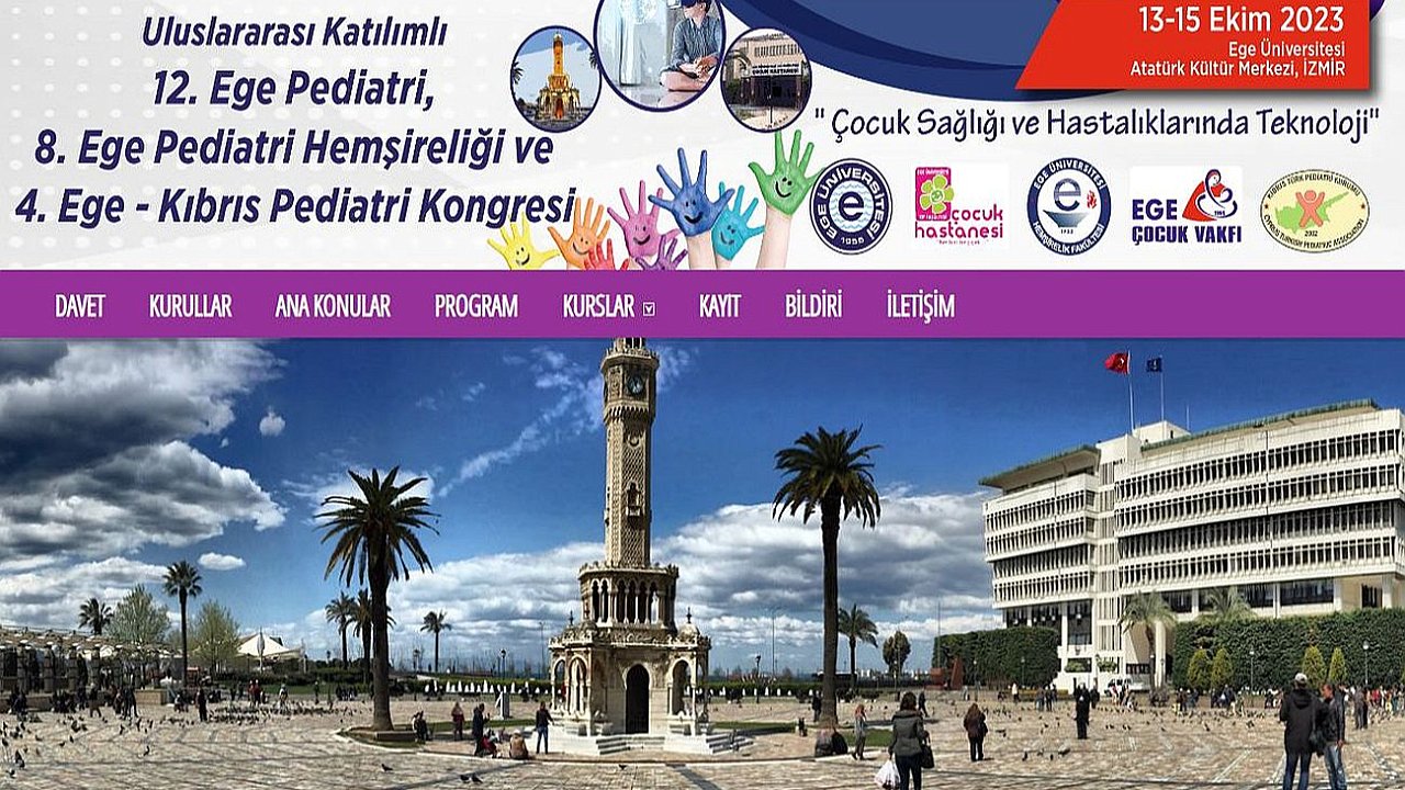 Ege Üniversitesi, “Uluslararası 12. Ege Pediatri 8. Ege Pediatri Hemşireliği ve 4. Ege Pediatri- Kuzey Kıbrıs Pediatri Kongresi”ne ev sahipliği yapacak. “Teknoloji ve Çocuk” mottosu ve uluslararası katılımla yapılacak olan kongre, Ege Üniversitesi Atatürk Kültür Merkezinde, 13 - 15 Ekim 2023 tarihleri arasında gerçekleştirilecek.