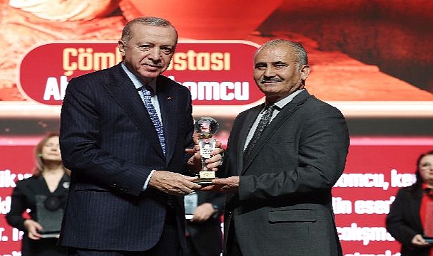 Çömlekçiliğin binlerce yıllık merkezi Menemen’de dünya şampiyonu çömlek ustası Ahmet Taşhomcu, UNESCO Yaşayan İnsan Hazinesi Ödülü’nü aldı. Usta çömlekçiye ödülünü Cumhurbaşkanı Recep Tayyip Erdoğan verdi.