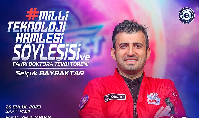 İzmir’de düzenlenecek TEKNOFEST öncesi Egelilerle “Milli Teknoloji Hamlesi” söyleşisinde bir araya gelecek olan Selçuk Bayraktar, Türkiye’nin son yıllardaki özellikle savunma sanayinde attığı dev adımları anlatacak ve deneyimlerini Egeli gençlere aktaracak.Selçuk Bayraktar’ın konuk olacağı etkinlik 26 Eylül Salı günü Ege Üniversitesi Prof. Dr. Yusuf Vardar MÖTBE Kültür Merkezinde, saat 14.00’te başlayacak. Etkinlik kapsamında Bayraktar’a Ege Üniversitesi Senatosu kararınca “Fahri Doktora” unvanı tevdi edilecek.